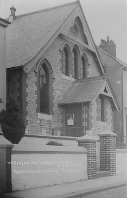 Vicarage Road, with the Saint Budeaux Wesleyan Methodist Chapel. With plans prepared by Mr W J Carder, an architect from Millbrook, Cornwall, and a tender accepted from Messrs Paynter & Davy of Bedford Place, Plymouth, the memorial stones for the building were laid on Wednesday December 7th 1892. The day was apparently very cold and unpleasant but a large gathering from Saint Budeaux, Devonport and Ford opened the proceedings with the hymn "These stones to Thee in faith we lay". The circuit choir was directed by Mr Davis. After a prayer from the Reverend C Speck and a portion of the scriptures was read by the Reverend A D White, the memorial stones were declared well and truly laid. The first was set in position by the Reverend J Felvus, standing in for Colonel Hipwell, who was unavoidably absent. Various documents of the time were placed in a bottle that was laid beneath this stone. Mrs Pearse laid the next stone, followed by Mr W Tonkin, Mr W F Moon on behalf of his wife, Mr T Whitby junior, and Mrs Short of Saint Budeaux. The three remaining stones were then laid by Mr T R Hawking, Mrs W A Saunders and Mr T Squire. It was so cold that the Reverend W Maltby, chairman and superintendent minister of the district, deferred giving the address. Instead the gathering retired to an adjoining barn, lent by Mr J Ford, for tea. The Chapel was dedicated at 3pm on Wednesday June 14th 1893. It was constructed of dressed limestone, with black facings, and a porch. The windows at the front were of stained glass while the remainder were of Cathedral tinted glass. The roof beams were of polished pitch pine, which was also used for the rostrum and the pews. A partition in the centre of the building divided the schoolroom from the Chapel. There was seating for 160 in the Chapel but 200 could be accommodated at a pinch. The schoolroom could hold one hundred children. The building and fees had cost £725. A prayer meeting was held first, presided over by the Reverend W T Gill. This was followed by a service at which the Reverend W Maltby, chairman of the Devonport and Plymouth Western circuit preached. The Saltash Wesleyan Choir, with Mr E D K Hawke on the harmonium lent by Captain Short, provided the choral music. The weather in June being somewhat better than when the memorial stones were laid, at 5pm the gathering then moved to an adjoining field lent by Mr Cole of Saint Budeaux, where tea was served by Mesdames Short, Doidge, Bartlett, Mends, Knawles, Moon, Camp, Gregory, Jones, Martin, Truscott, Foster, Cuthbert, Hayman and Saunders assisted by the Misses Camp, Martin, Peard and Foster. It survived until after the Second World War but had become a Royal British Legion branch meeting place. The foundation stone of a new Methodist Chapel for Saint Budeaux was laid in September 1956 by Mr Isaac Foot. On Wednesday October 9th 1957 the new Chapel was opened and dedicated by the Reverend David Ball, secretary of the Plymouth and Exeter District, in the presence of the Lord Mayor of Plymouth, Alderman Leslie F Paul and Mrs K R Kitt, who represented the reverend K R Kitt, a former minister of the Chapel. The architects, Messrs L F Vanstone & Partners, presented Mrs Kitt with the key with which to open the Chapel doors. At the usual evening meeting held afterwards, it was stated that the cost of the building was £42,000 and the furnishings cost £4,320. The organ had cost £985 and it was hoped to sell the old organ by the end of that week. Much of the building cost had been funded by war damage compensation on the Gloucester Street Methodist Chapel in Devonport.