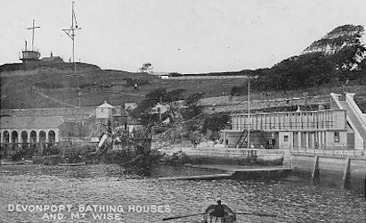 Devonport. A series of 32 semaphore signalling stations was installed by the Admiralty between London and Plymouth Dock in about 1810. Within Devon, these were at Haldon, Knighton, Marley, Lee and Saltram. The last station in the chain was at Plymouth Dock and was added to a Redoubt that had been constructed on the site of Mount Wise House in 1778-79. It was used to pass Admiralty signals on to ships moored in the Sound and the Hamoaze. On Friday July 8th 1842 the Port Admiral, Admiral David Milne, based aboard HMS "Caledonia" in the Hamoaze, issued instructions for signals to be used at Mount Wise Signal Station in the event of a fire breaking out at any of the Government establishments in Devonport. By both day and night the first intimation was by a gun being fired, which during the day time would be accompanied by Compass signal at the Flag Staff. At night, if the fire was in the Royal Dockyard, or the Gun Wharf, or anywhere to the westward of Mount Wise, a rocket would then be fired. Alternatively if the fire was in the Royal Marine Barracks, or at the Royal William Victualling Yard, or the Royal Naval Hospital, or anywhere in the Town, then blue lights would be exhibited. During foggy weather the gun was to be fired every four minutes until it was acknowledged by the Flag Ship. The instructions continued: 'The moment the alarm is made from Mount Wise every Ship under my orders is to hoist out her Engine with the proper hoses and fire buckets, and other apparatus which may be considered necessary, such as hooks, ropes, axes, etc. The Engines to have slings and Hoses always attached to it, and the above mentioned articles kept in readiness near the engine. A Commissioned Officer and a proper number of other Officers and men always to be in readiness in any alarm, and when the boat leaves the ship, they are to take in tow the boat which has the engine on board and proceed to the spot where the fire has commenced. The officer of the Flag Ship to take command until superseded by a superior officer or until he receive other orders from the Dock-yard, or through the Commander-in-chief or his Flag Lieutenant.' This was replaced by the electric telegraph in October 1852. However, the old signalling method seems to have continued for in the Naval and Military Record dated June 7th 1888 it was recorded that: 'The Breakwater Fort and the signal station at Mount Wise are to be fitted with 3 arm semaphores at a cost of £84 and £143 respectively'. The new signal station stood thirty feet above the original level and was visible fully a mile beyond the Breakwater. It had semaphore flash lights and that modern invention, the telephone. The Naval & Military Record states that it was brought into use on Friday November 2nd 1888. On Monday June 3rd 1889 the Western Daily Mercury newspaper reported that: 'To-day the four pensioned naval signalmen selected by the Naval Commander in Chief (Admiral Sir W Dowell KCB), for the new signal station erected on the Plymouth Breakwater Fort commence duty. A look-out house has been erected on the top of the fort, together with a steel semaphore, and the house is in direct communication with the chief signal station at Mount Wise and Admiralty House. Two of the men will be on duty both night and day, but definite arrangements as to the exact number of hours they will be kept on and at what period they will be ashore have yet to be arranged. Accommodation for cooking and sleeping has with the full concurrence of the War Office been provided for the men in one of the casements of the fort nearest the look-out house and semaphore.' Chief Signalman J Lawrance was in charge of the Admiralty Signal Station at Mount Wise in 1914. On Saturday July 22nd 1933 the Western Morning News revealed that the Admiralty had given instructions for the time-ball signals at Devonport, Sheerness and Portland to be discontinued and the apparatus dismantled. Until a few years before a gun hand been fired from Mount Wise at 1pm daily at the same time as the time-ball was dropped. The actual date that this would be effective was to be announced. A similar announcement appeared in the Royal United Services Institute Journal in November 1933.